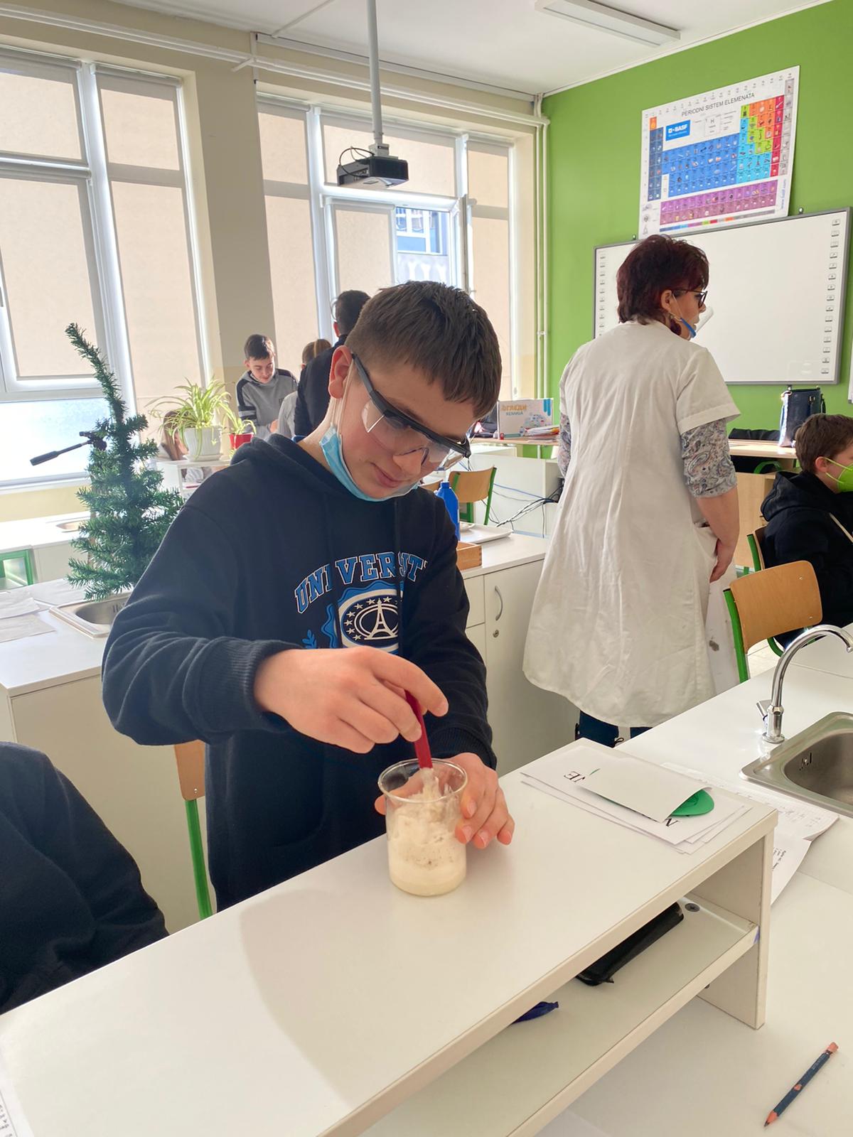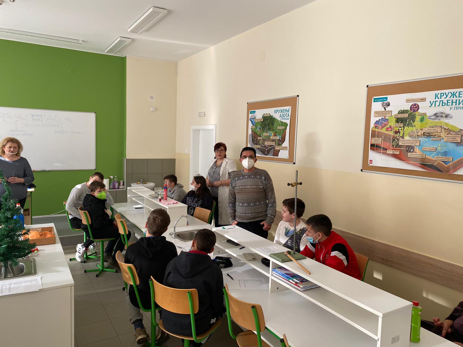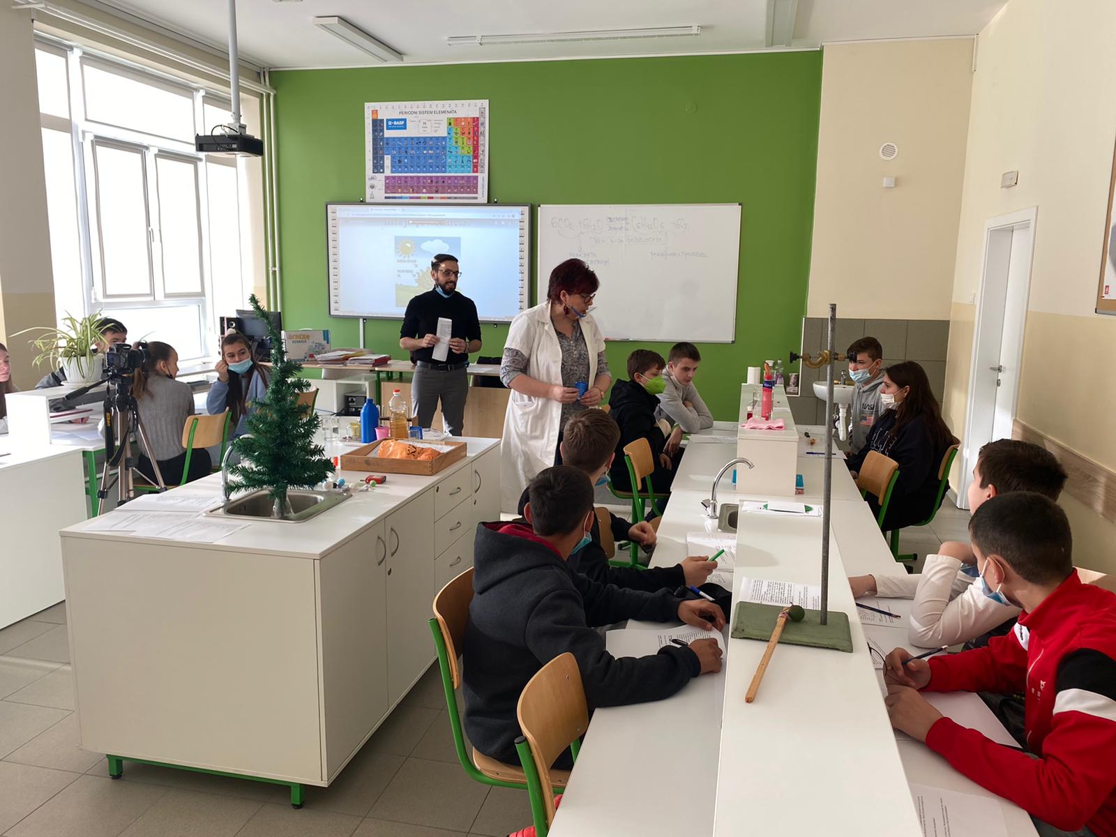 Within the „CLIL“ activities of our school, we have joined four subjects today to improve our students’ knowledge in Biology, Chemistry and Physics through the English language. After the subject teachers had finished their presentations, the seventh-grade students successfully conducted experiments in each of the above mentioned subjects following the experiments’ instructions given in English. The outcomes of the students showed in today’s „CLIL“ lesson were fascinating. Special gratitude is expressed to the students and their teachers: Lidija Vulović, Tina Zarkov, Lenka Nikolić and Stevica Maksimović.