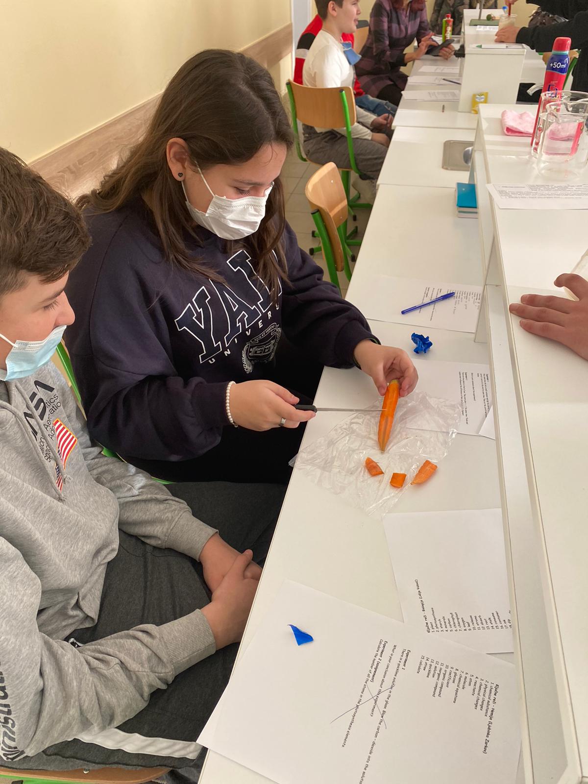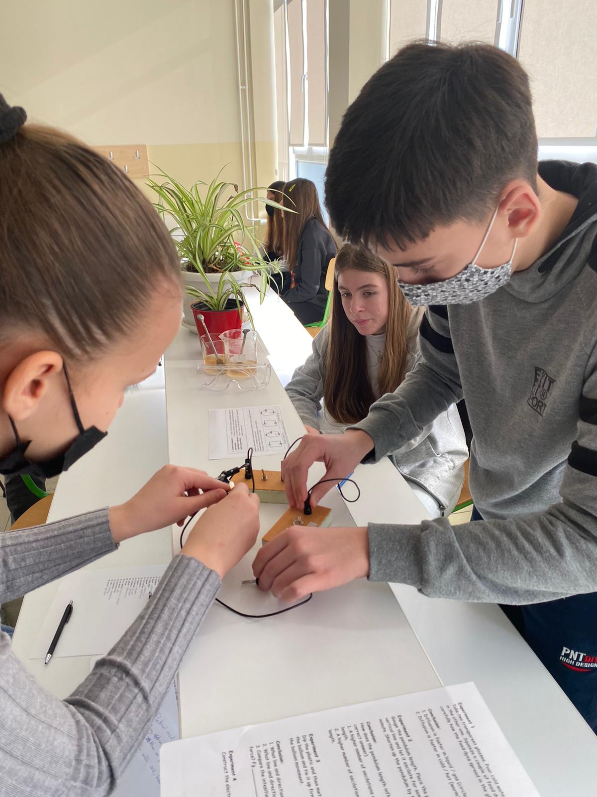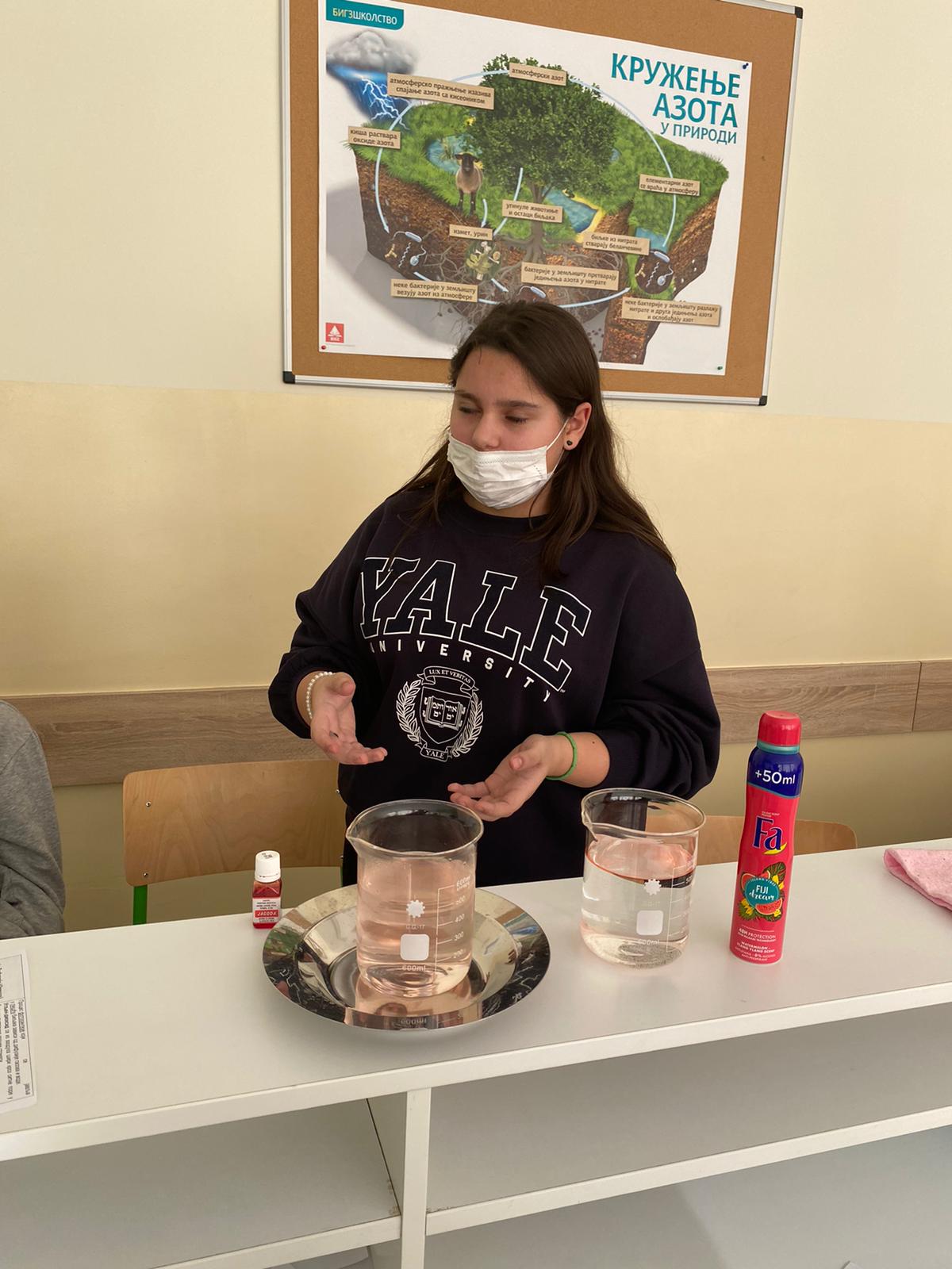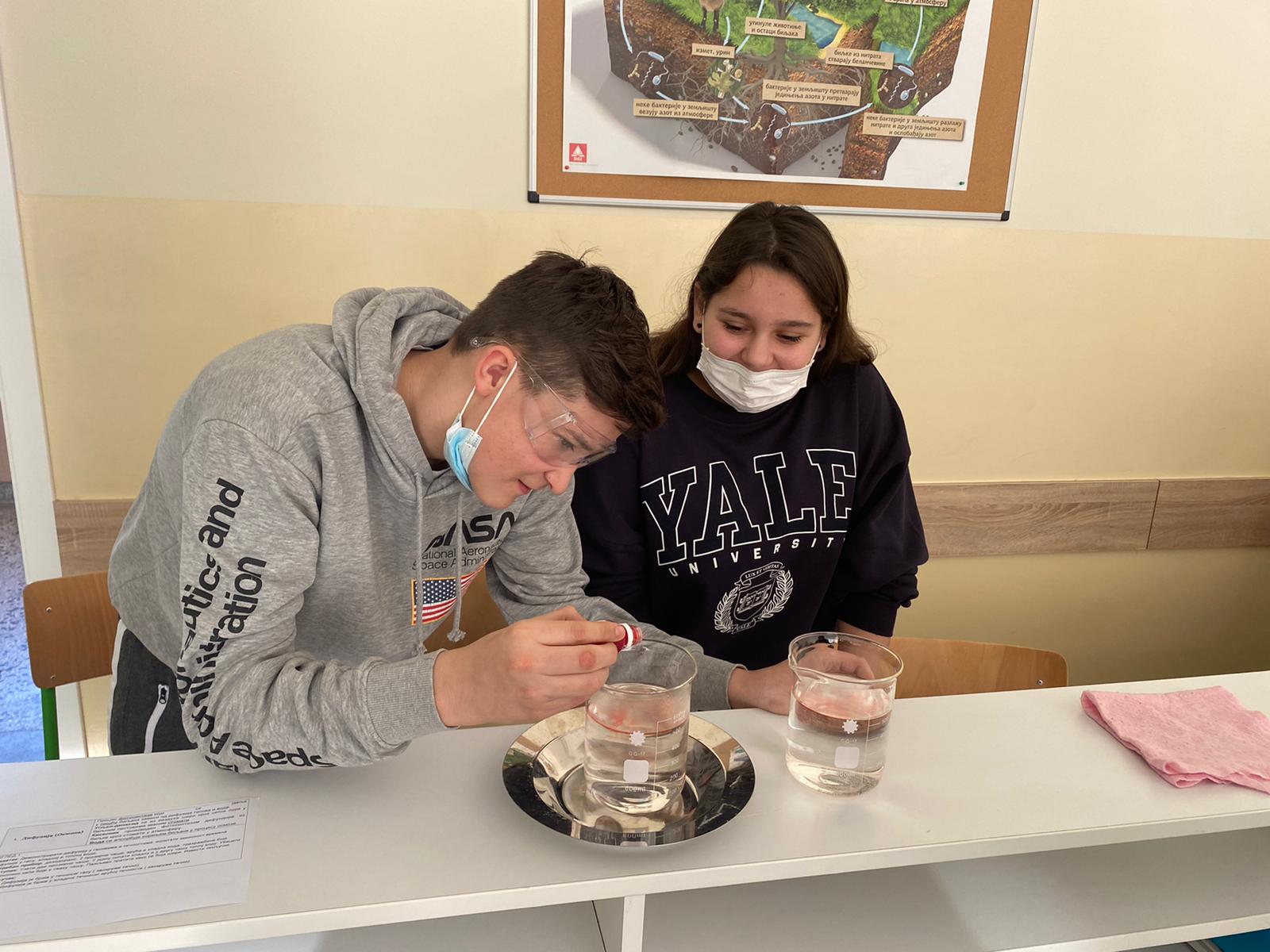Within the „CLIL“ activities of our school, we have joined four subjects today to improve our students’ knowledge in Biology, Chemistry and Physics through the English language. After the subject teachers had finished their presentations, the seventh-grade students successfully conducted experiments in each of the above mentioned subjects following the experiments’ instructions given in English. The outcomes of the students showed in today’s „CLIL“ lesson were fascinating. Special gratitude is expressed to the students and their teachers: Lidija Vulović, Tina Zarkov, Lenka Nikolić and Stevica Maksimović.